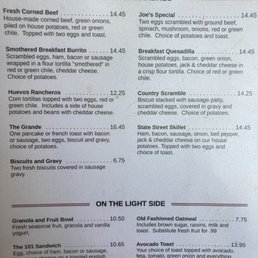 From classic breakfast options like the Two Egg Breakfast and Chicken Fried Steak & Eggs to signature dishes like the Fresh Corned Beef and Smothered Breakfast Burrito, there is something for everyone on the menu. The Three Egg Omelets and House Specialties showcase the cafe’s creativity and attention to flavor, while the Classic Lunches and Burgers are perfect for a satisfying midday meal.